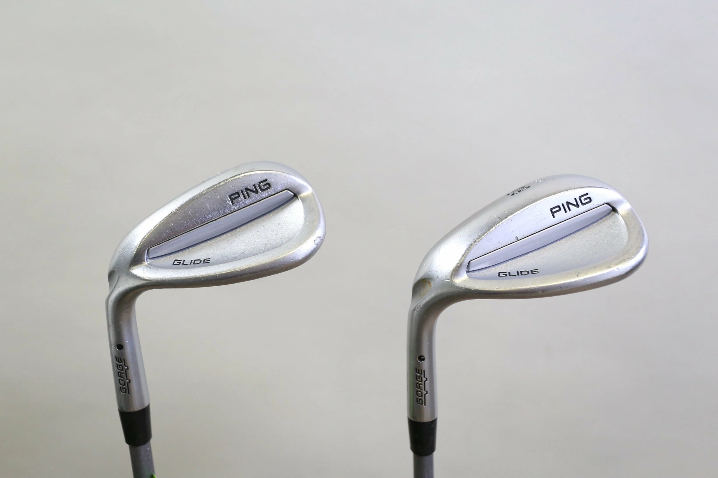 GOOD – This wedge set is in good condition. There is average wear around the heads and on the faces of the clubs from regular use. There are very small markings and scratches along the shafts from normal use and storage. The grips are in good condition with some wear from regular use and storage. 56* – 34.75 inches, 60* – 34.5 inches. Please see pictures for more details.